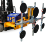 El OMNI 800 se conecta fácilmente a una carretilla elevadora y se puede utilizar dentro y fuera de la envolvente de un edificio para permitir el acristalamiento seguro y eficiente de vidrios y ventanas que pesen hasta 800 kg.